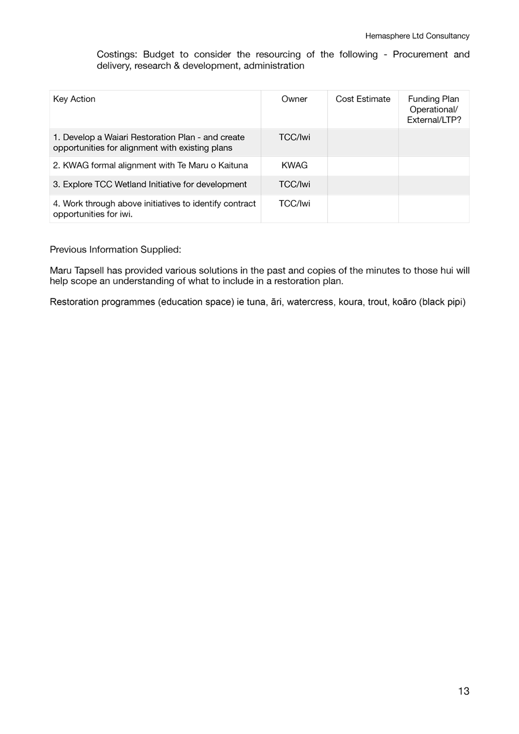 Approved $2,500 from the Grants Account for the Te Ara Kahikatea Incorporated |