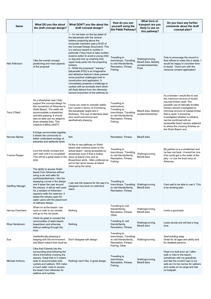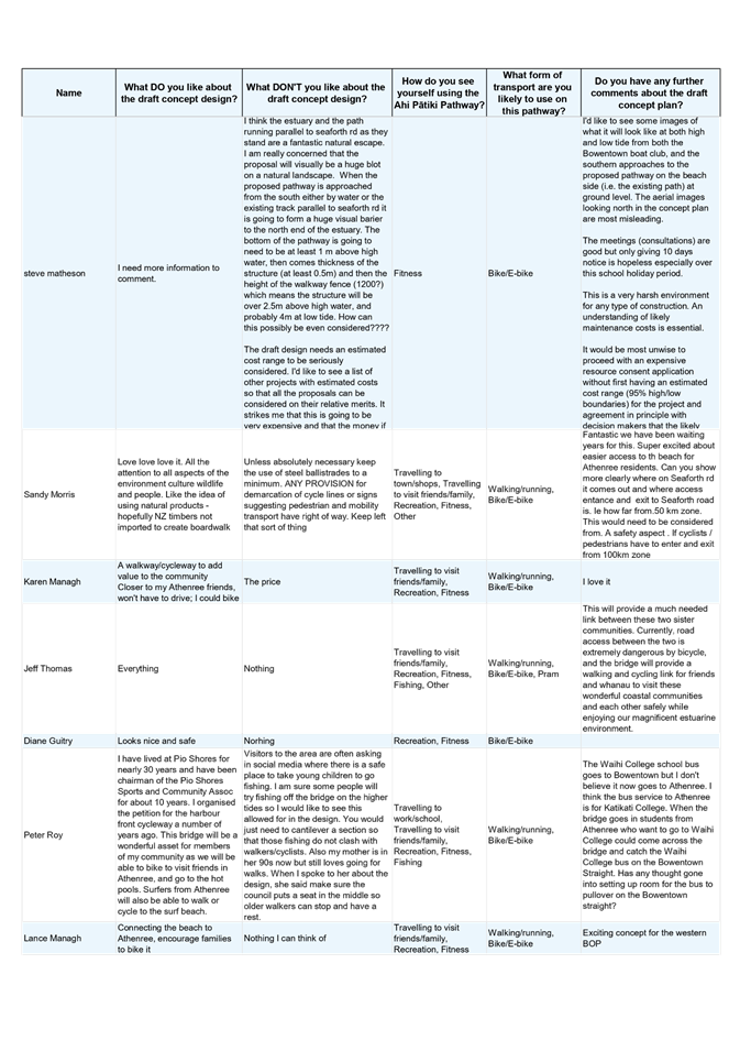 Pātiki extract of email submissions excluding Friends Of Athenree sub ⇩ ![]()
