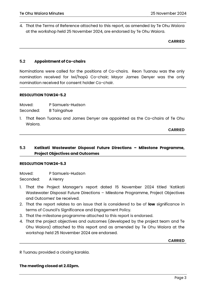 5. Minutes of Te Ohu Waiora meetings to date are attached for reference. A verbal update on progress to date, options considered and evaluation criteria was presented at the workshop on 5 June 2025.