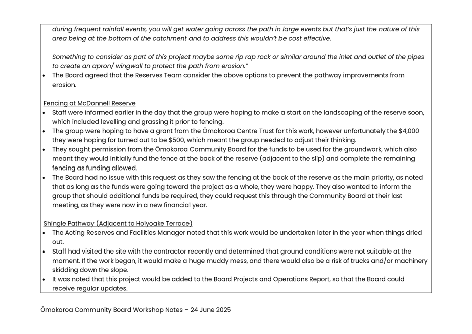 9.1 Ōmokoroa Community Board - Workshop Notes - 24 June 2025