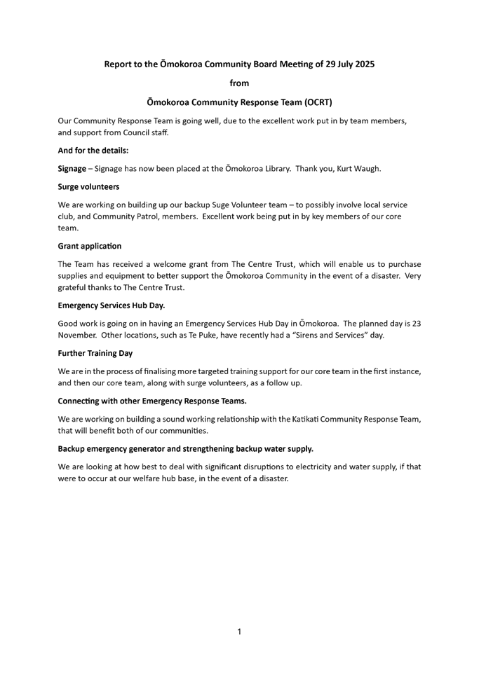 9.2 Ōmokoroa Community Board - Chairperson's Report - July 2025