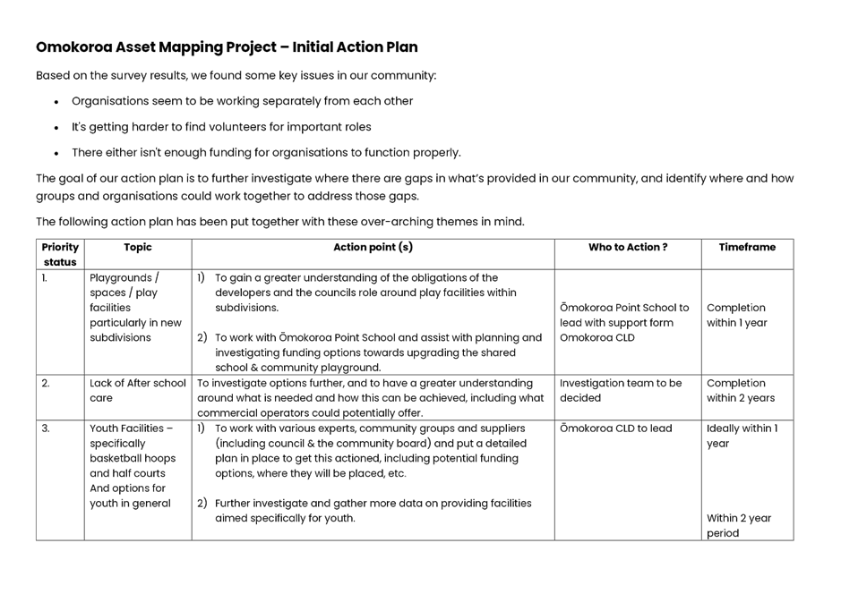2024/25 Omokoroa Community Board Reserve analysis: