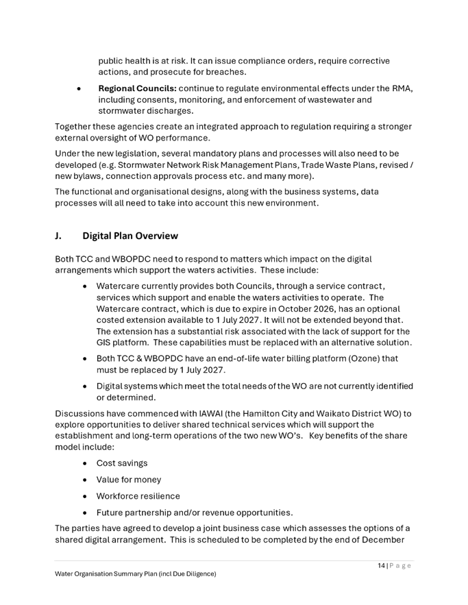14. The Summary Plan also addresses the digital work required by WBOPDC and TCC to ensure the continuation of water service delivery. Digital transformation is critical regardless of whether WBOPDC establishes a WO or not.