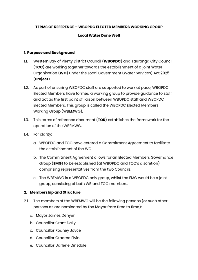 of Reference - WBOPDC Elected Member Working Group ⇩