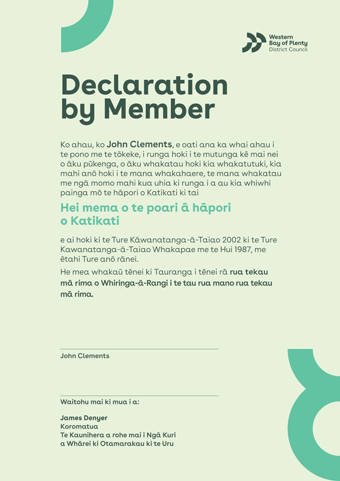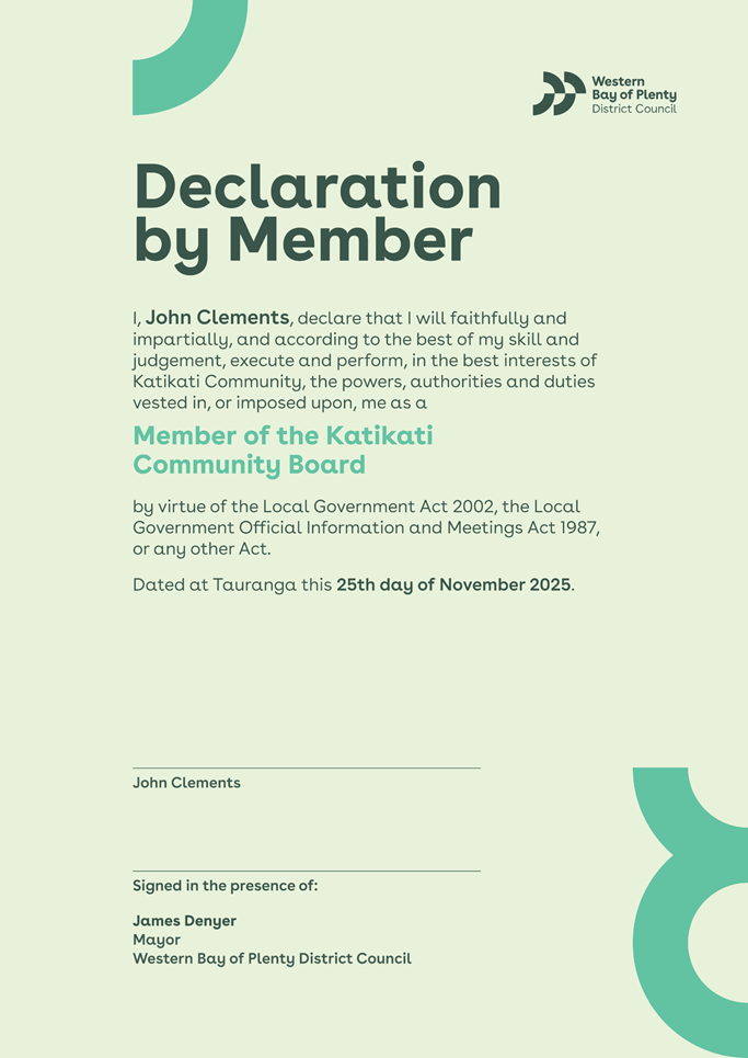 10.1 Declaration by Katikati Community Board Member