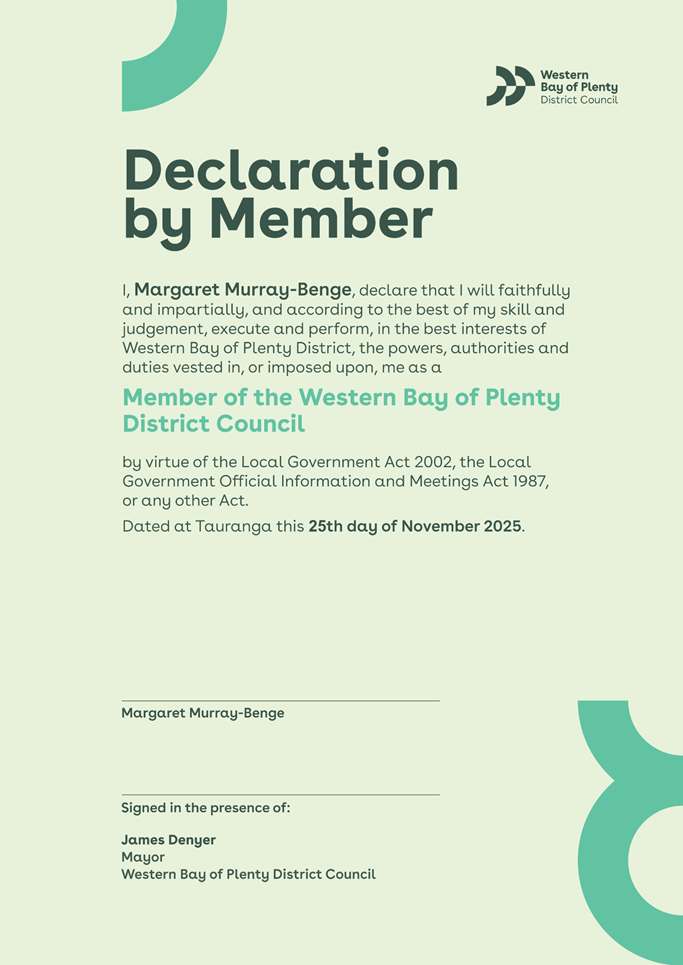 It was pleasing to hear on 14 November that the Secretary for Local Government has accepted both our and Tauranga City Council’s Water Services Delivery Plan under s20(1)(b) of the Local Government (Water Services Preliminary Arrangements) Act 2024. This follows many months of hard work from staff in preparing this plan, and I wish to thank them for this successful outcome.
